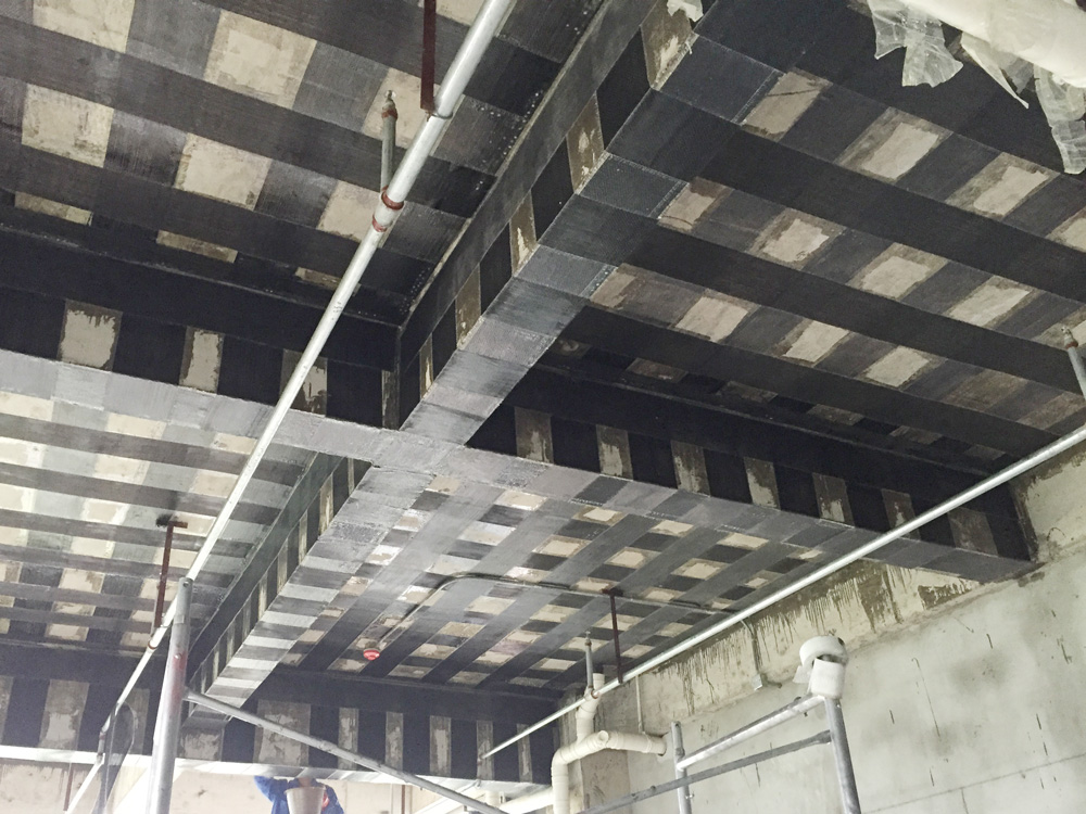 施工工藝:粘貼炭纖維、灌漿料、鋼支撐轉(zhuǎn)換